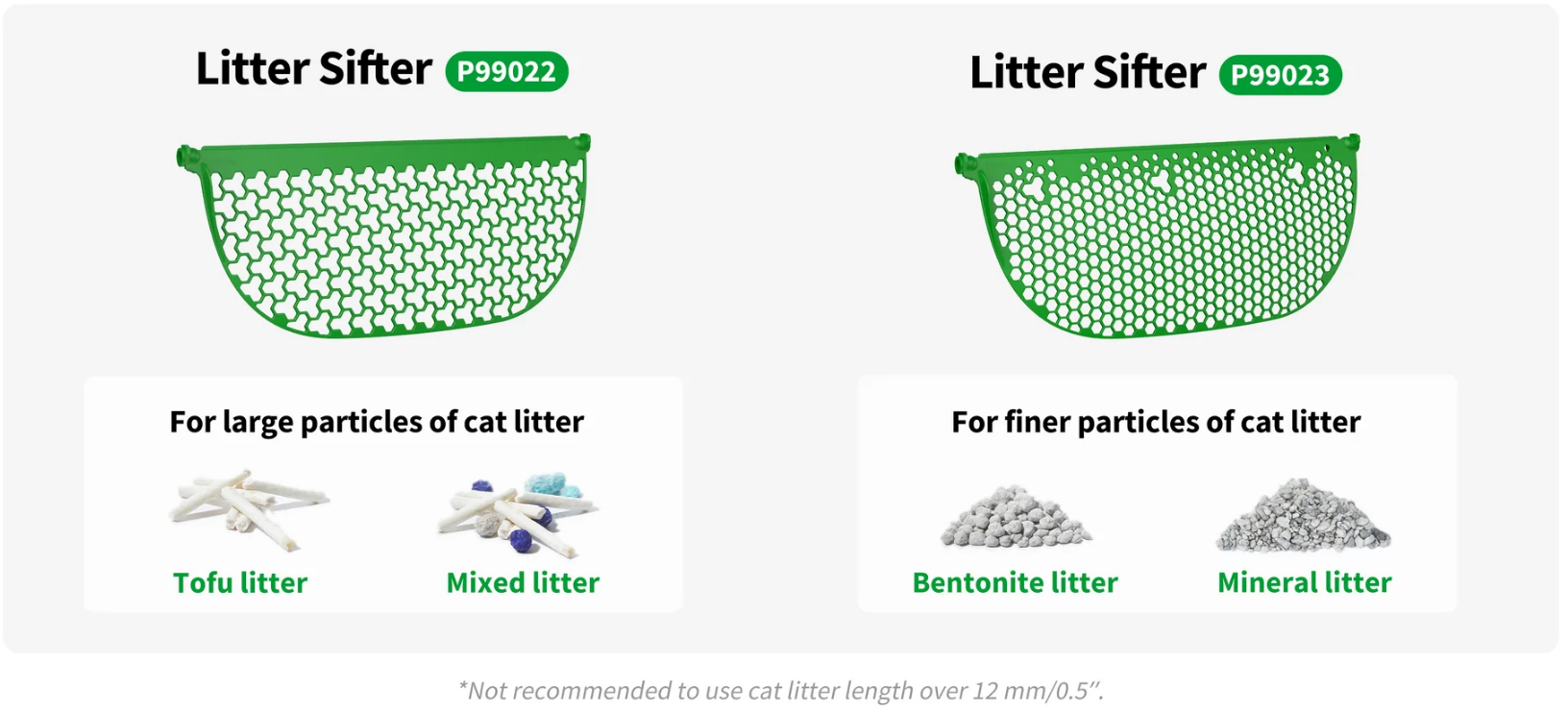 Two replaceable sifters ensure optimal cleanliness and minimize litter usage.