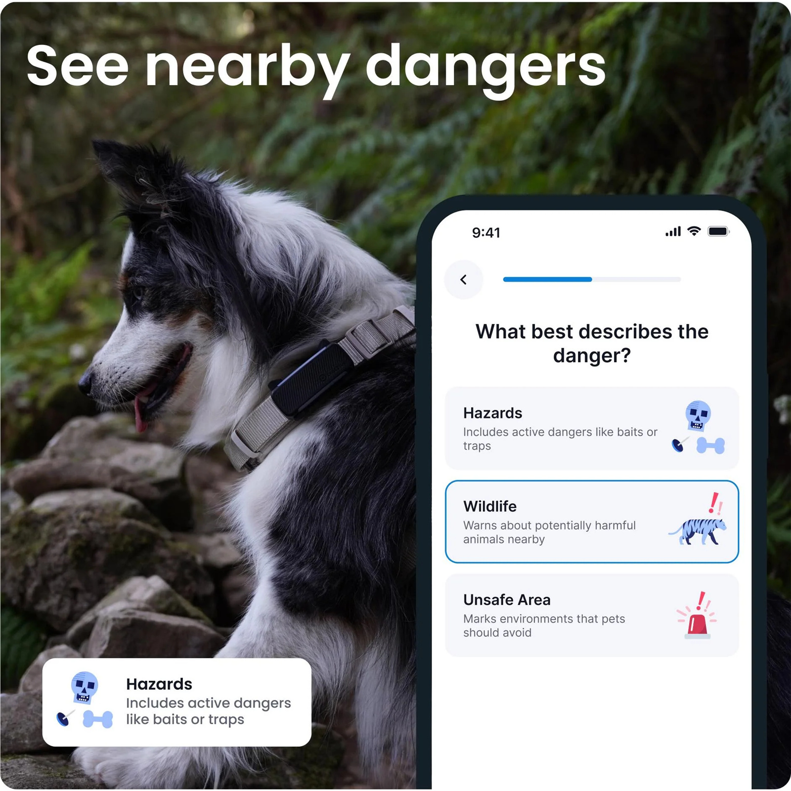 Track your dog's real-time location. Create Virtual Fences to keep them safe.