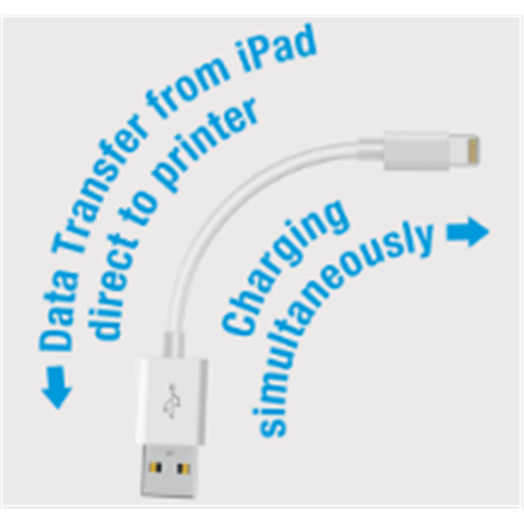 - Charging and data transfer between iPad and Printer via standard Lightning to USB cable