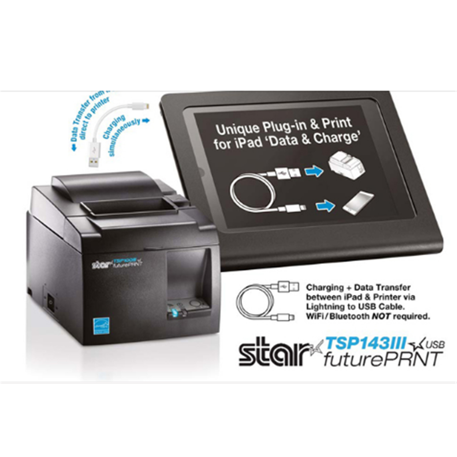 The TSP143IIIU is a game changing USB POS printer, the first of its kind to be able to connect directly to an iPad or iPhone using the Apple Lightning cable for reliable USB communication and simultaneous charging.