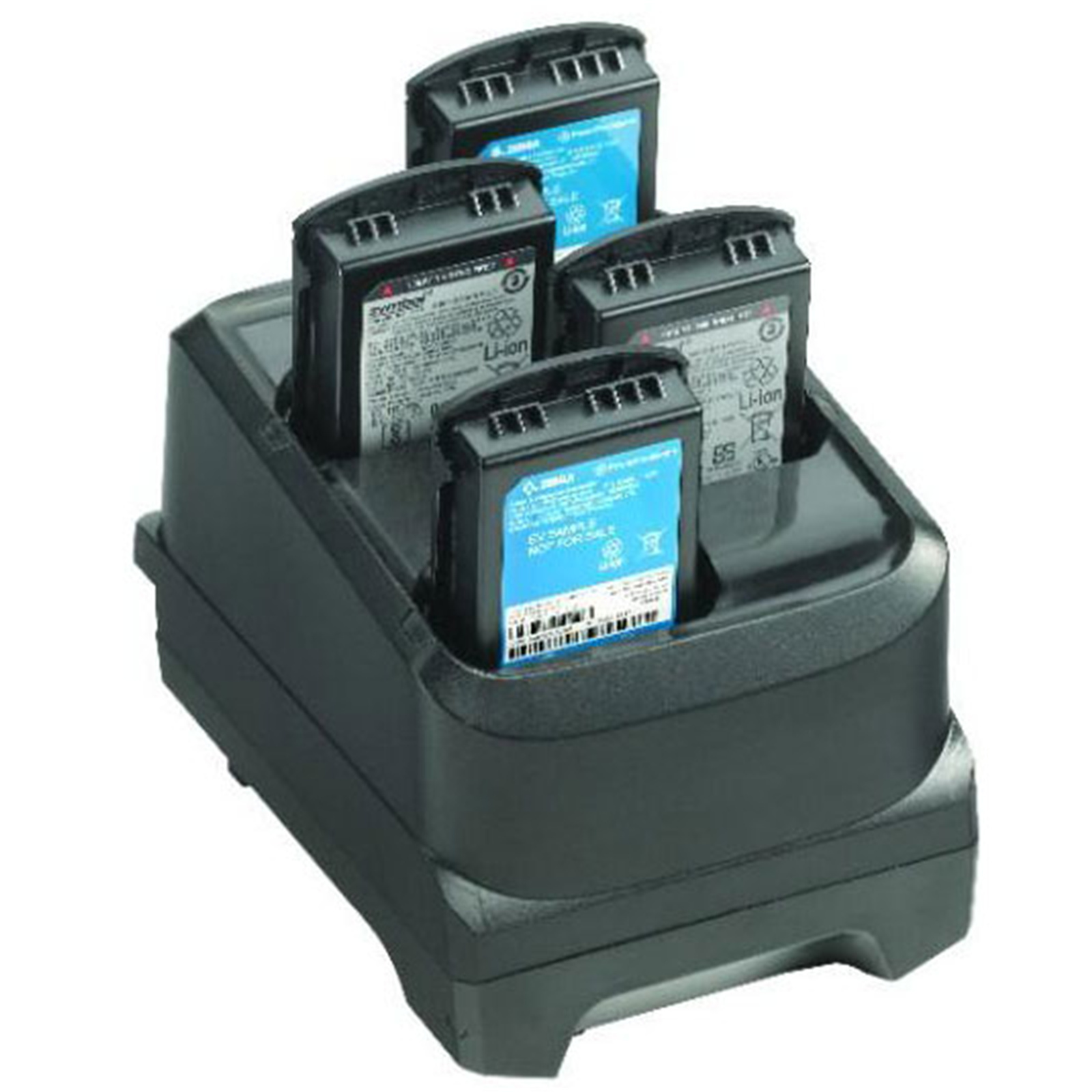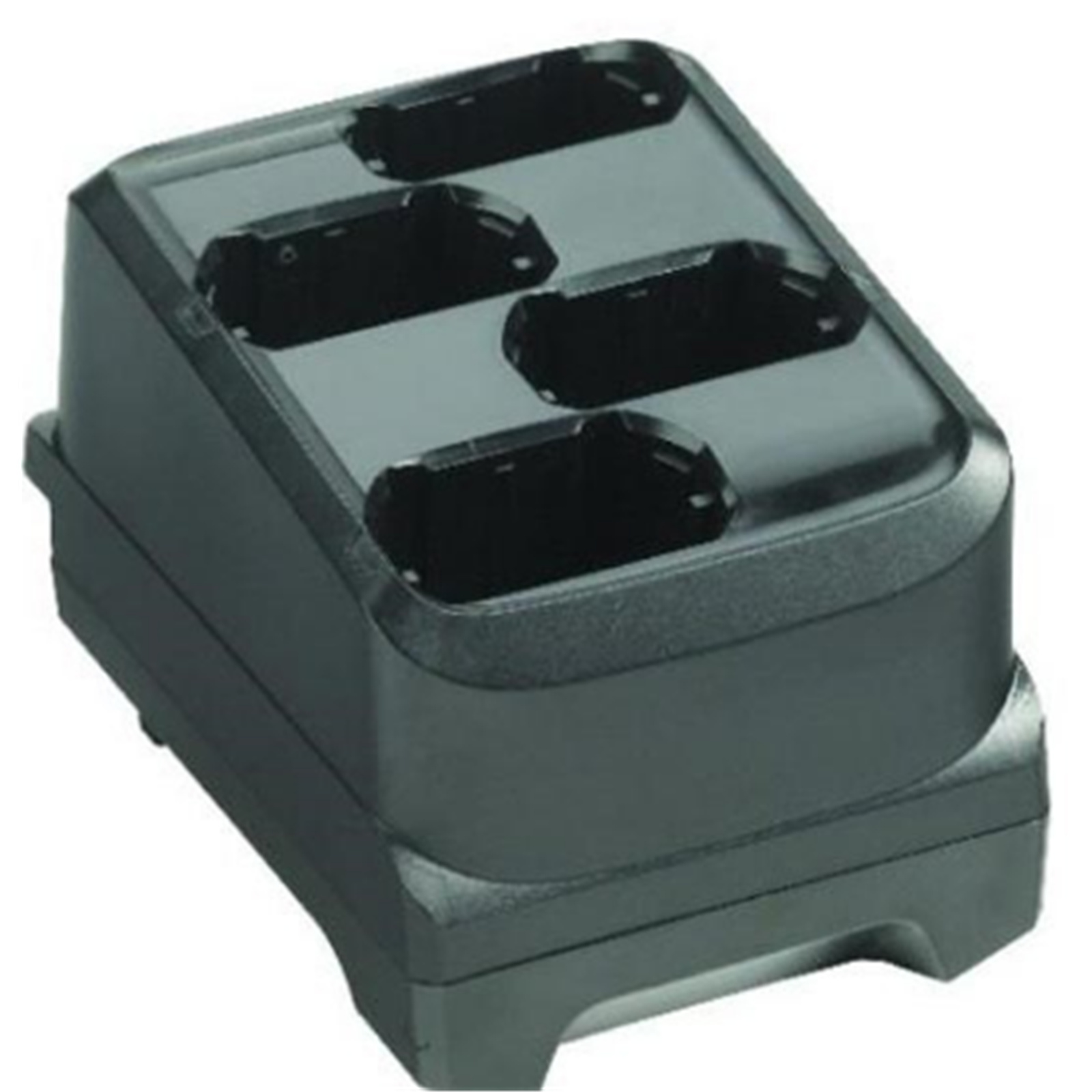 4 Slot battery charger for charging up to 4 Zebra MC3300 or 4 MC3200 batteries at the same time. Supports fast charging of MC3300 batteries.
