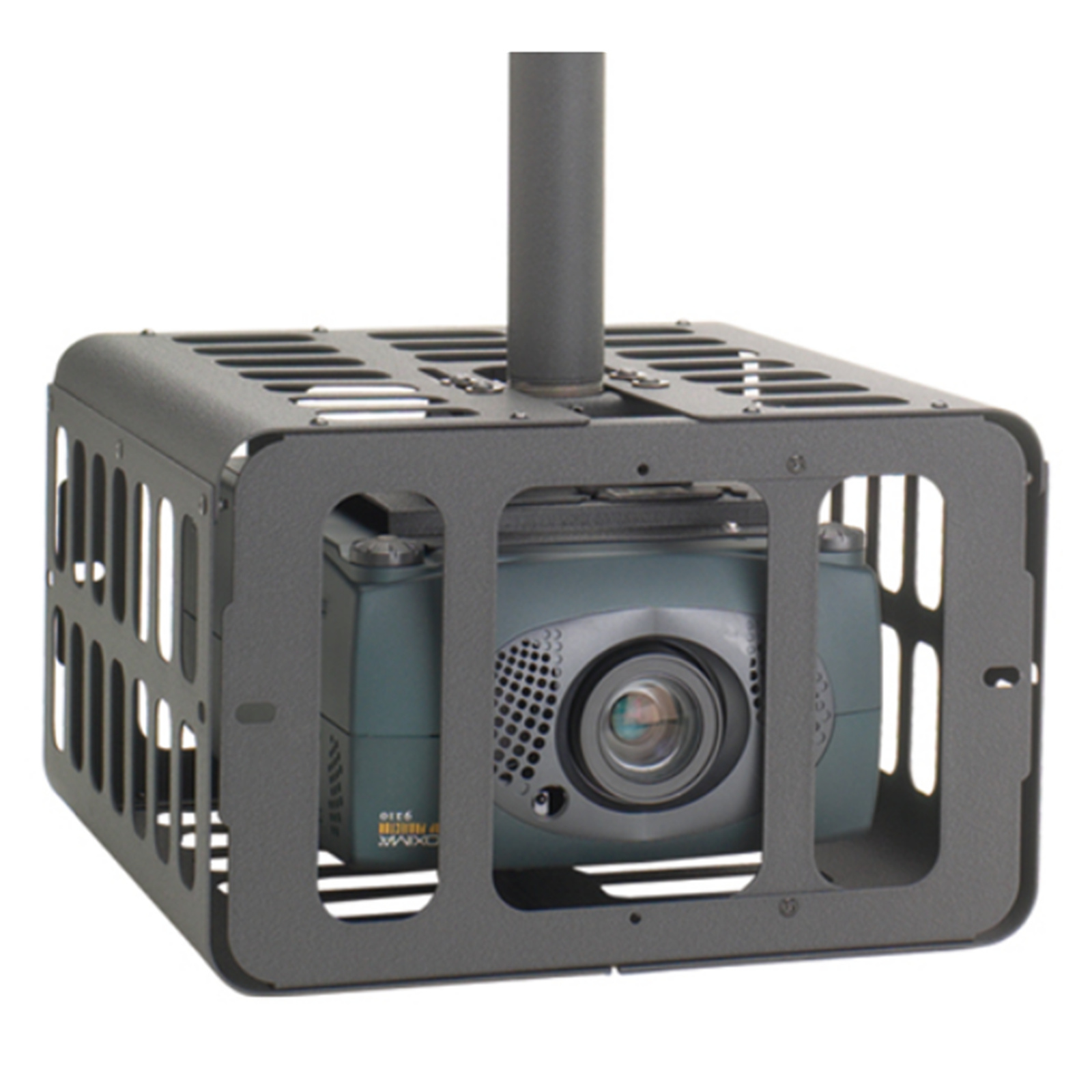 - Fully encloses projectors in a locked steel cage to protect from theft or recreational damage