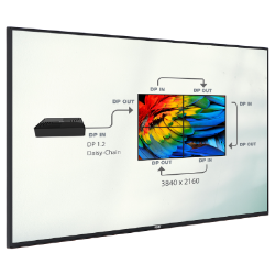 The display can mirror the content (to another display) into its display port out coming from its display port in. This set up creates a daisy chain like structure allowing for monitors to be set up as Video Wall mode.