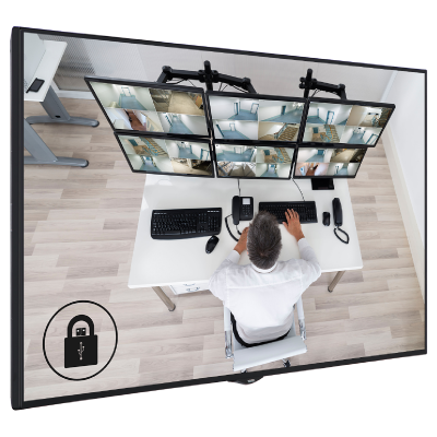 This series lets your USB and your content to be secured within the back cover of the display. The cover is protected with a screw not allowing any outside intervention.