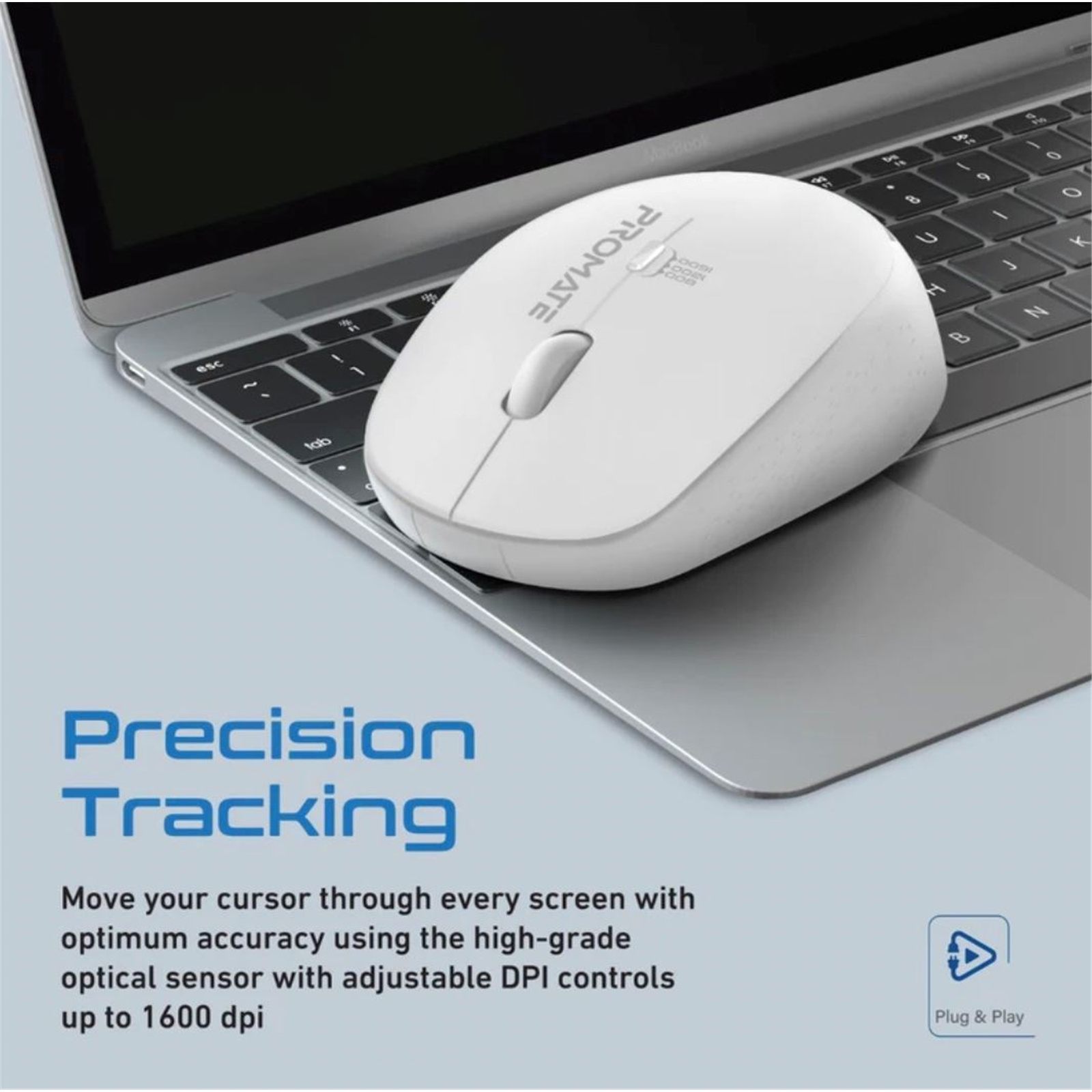 Promate TRACKER.WH Ergonomic Wireless Mouse - White 800/1200/1600 DPI - 10m Working Range - Included Nano Receiver - Easy Plug & Play Installation - Compatible with Windows & Mac