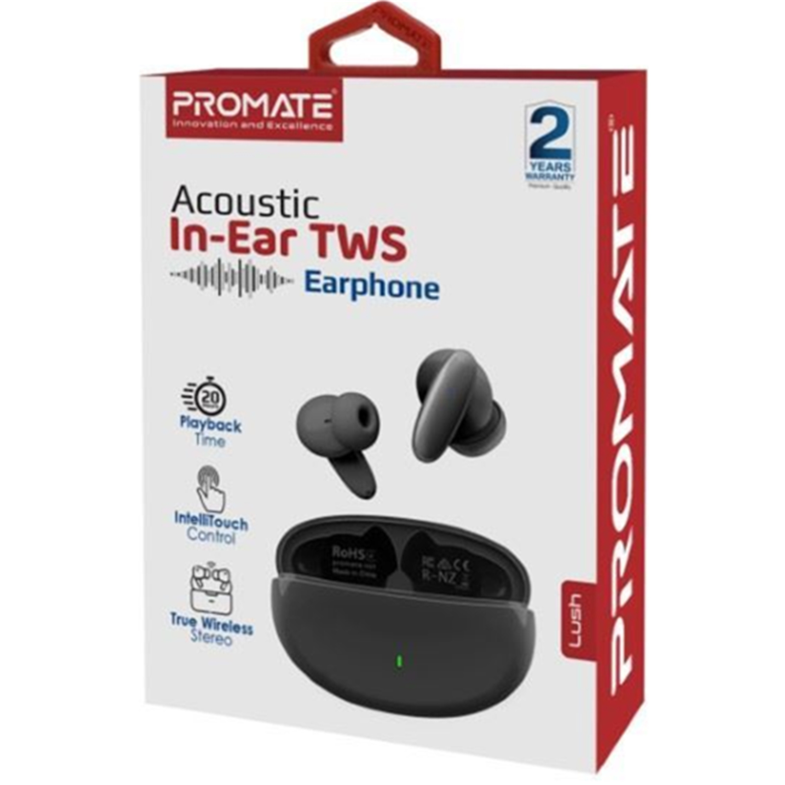 Product URL: https://www.pbtech.co.nz/product/PRM1076/Promate-LUSHBLK-In-Ear-HD-Bluetooth-Earbuds---Blac