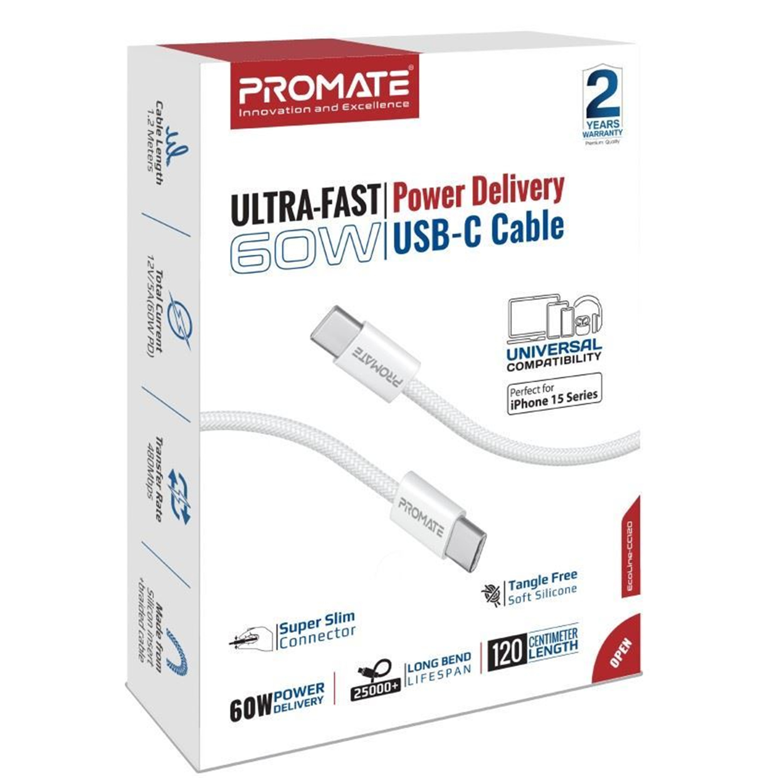 Product URL: https://www.pbtech.co.nz/product/PRM1212/Promate-ECOLINE-CC120-60W-PD---480Mbps-USB-C-Cable