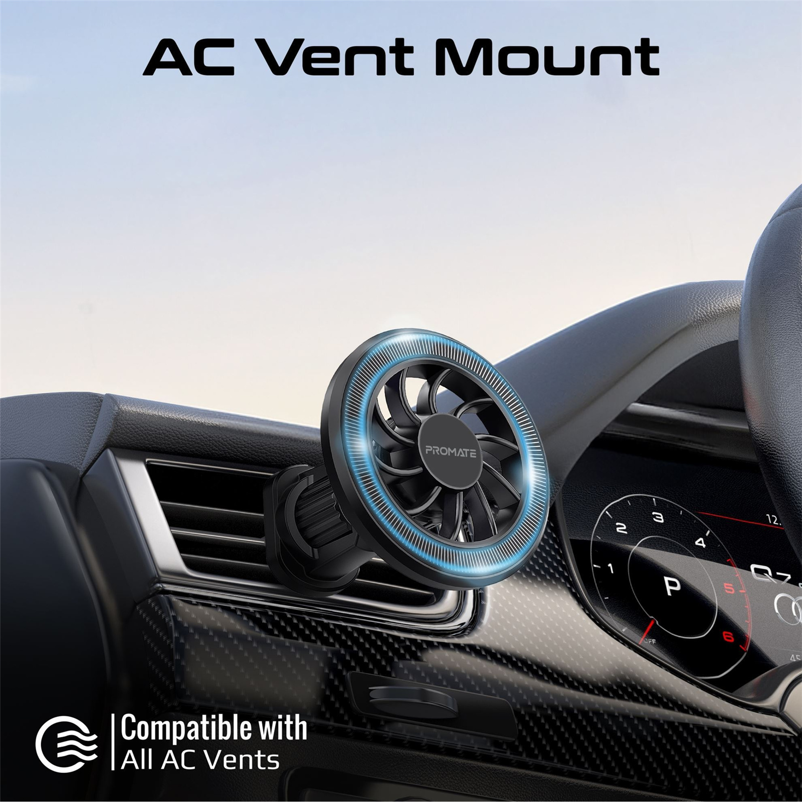 Promate CLIPMOUNT MagGrip Cradleless AC Vent Magnetic Smartphone Mount. Includes MetalRing. 360 Rotation. Seure Mounting. Perfect for All Phones & Cases.