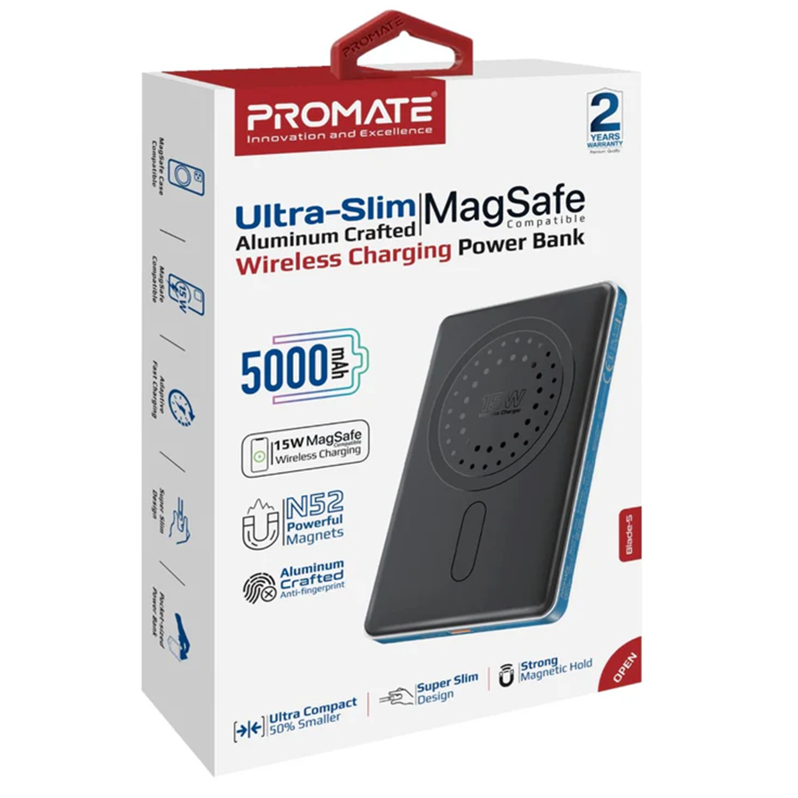 Blade-5 MagSafe Compatible Power Bank boasts a powerful 5000mAh Lithium-ion backup battery for keeping your devices powered up anytime, anywhere.