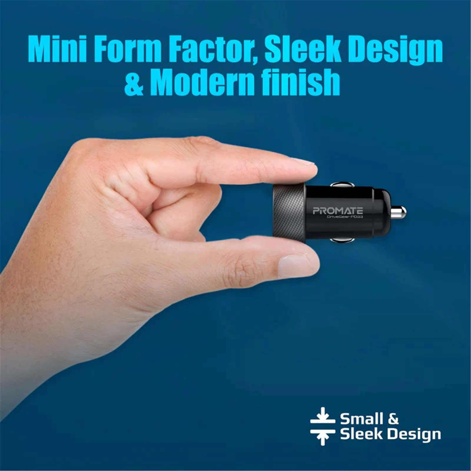 Promate DRIVEGEAR-PD33 Ultra-Fast Dual Port Compact In-Car Phone Charger - 33W Black
