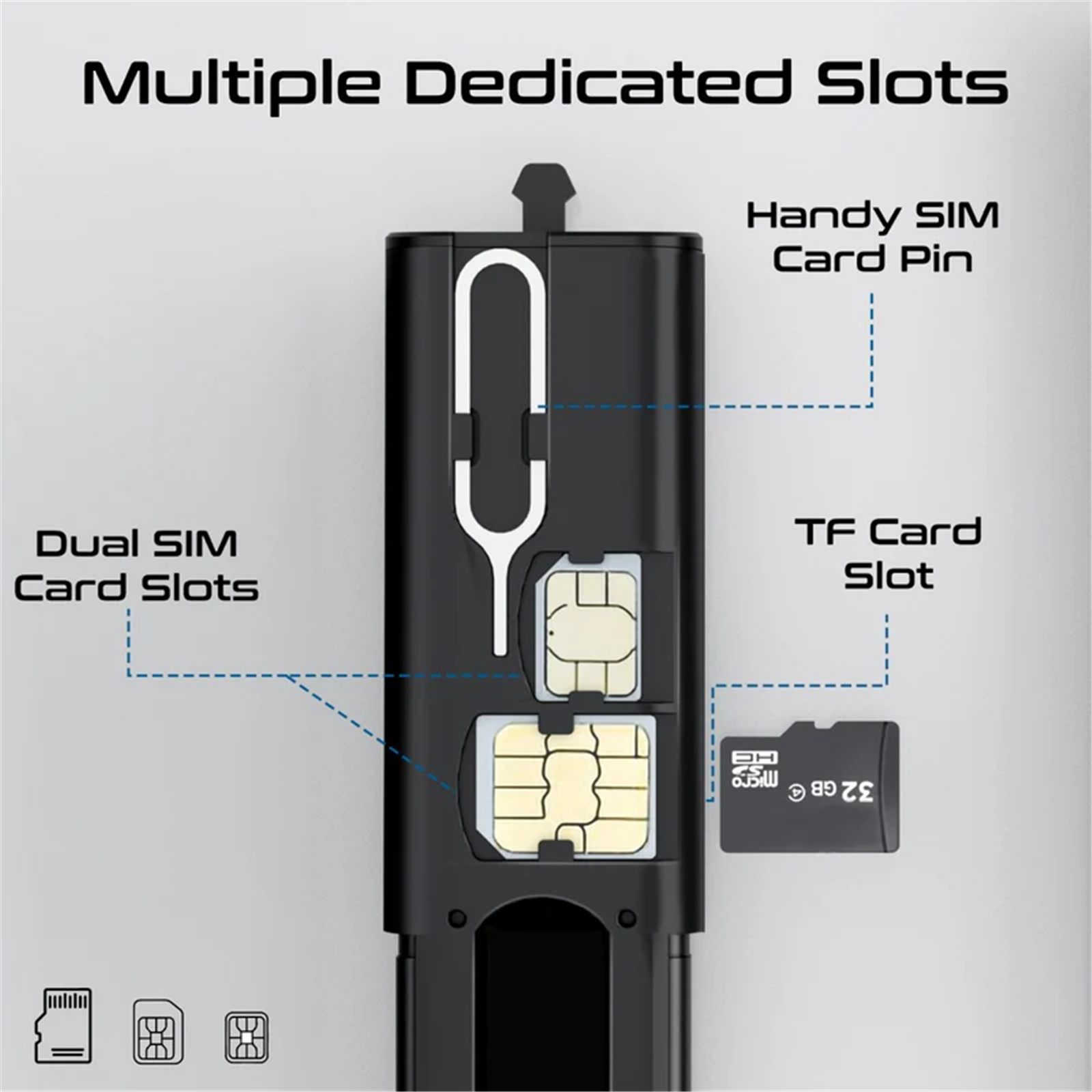 Effortlessly switch between SIM cards with the PERK's built-in precision SIM card pin. Always at hand, this essential tool ensures you can quickly access your phone's SIM tray, making it a must-have for travelers, professionals, or anyone who frequently changes SIM cards.