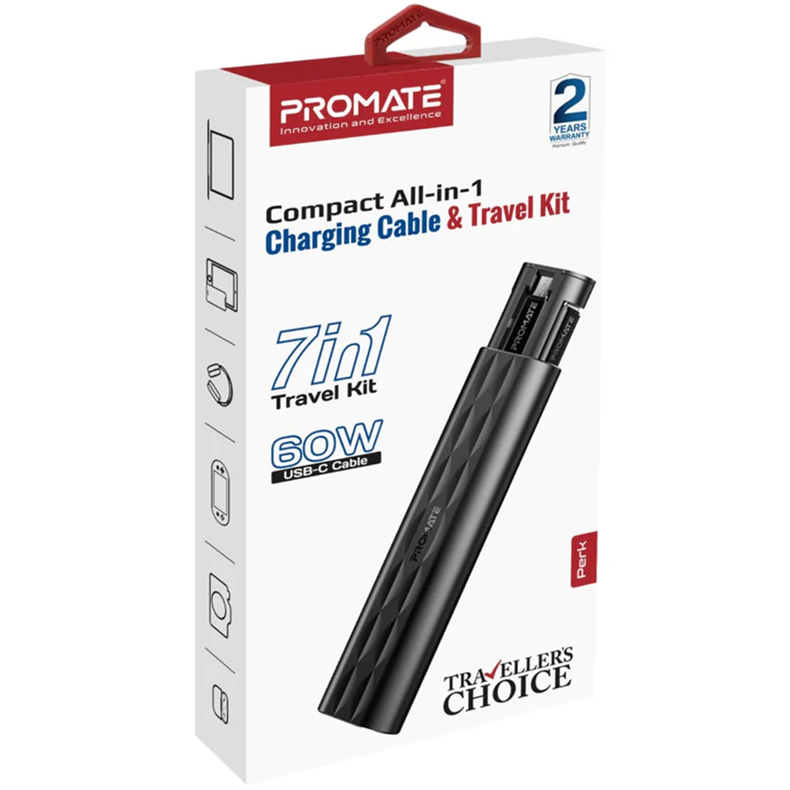 In addition to its adapters for Micro-USB, Lightning, and USB-A devices, the Promate PERK is universally compatible with a wide range of smartphones, tablets, and other gadgets. This all-in-one solution ensures that you're prepared for any charging or data transfer situation.