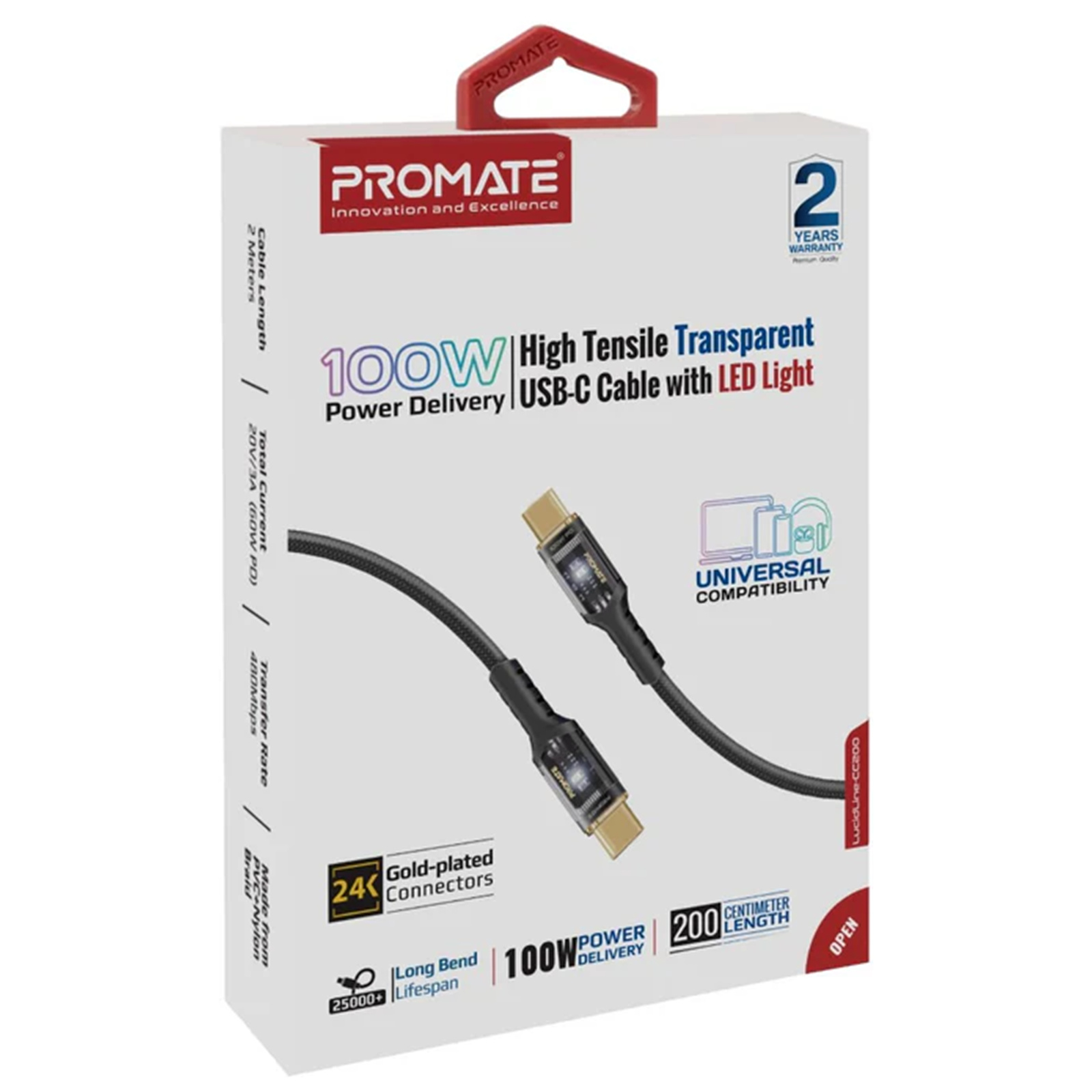 Product URL: https://www.pbtech.co.nz/product/PRM1312/Promate-LUCIDLINE-CC200B-100W-PD---480Mbps-USB-C-C