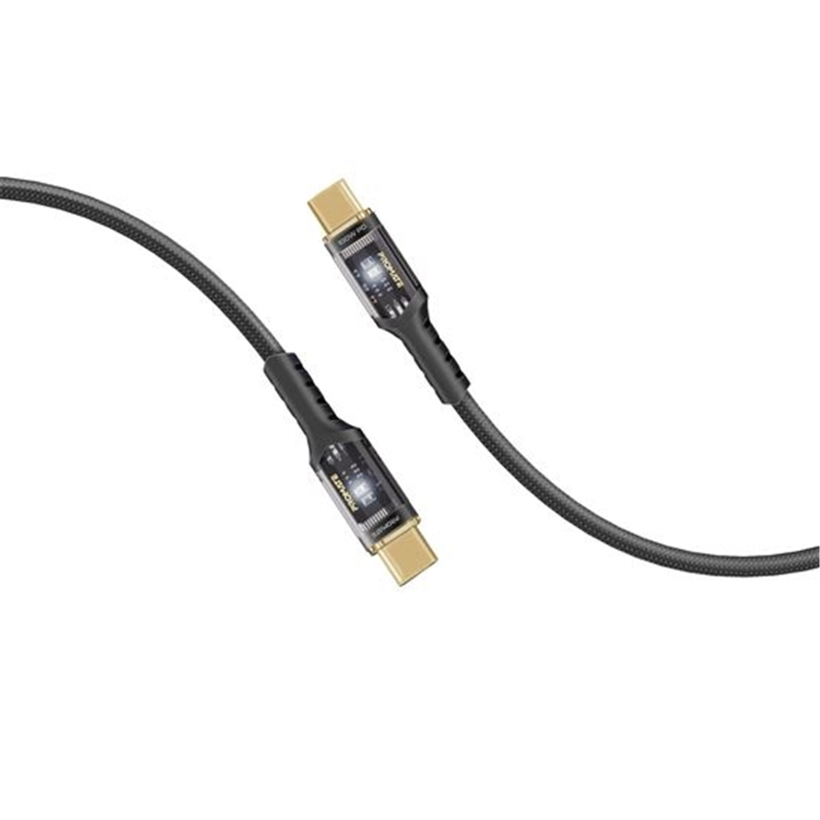 Promate LUCIDLINE-CC200B 100W PD - 480Mbps USB-C Cable - 2m - Black Transparent Connectors - LED Light - Gold Plated Connectors - Data & Charge