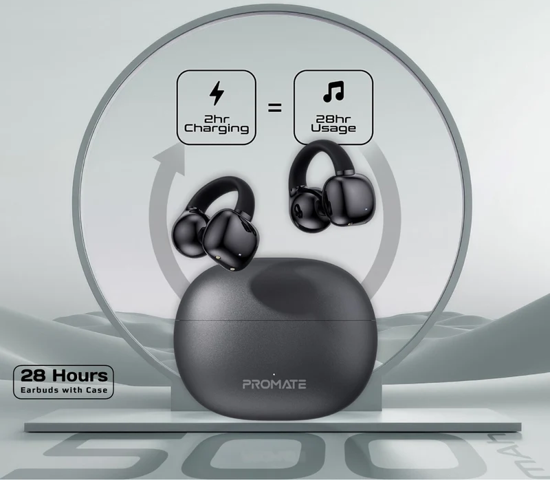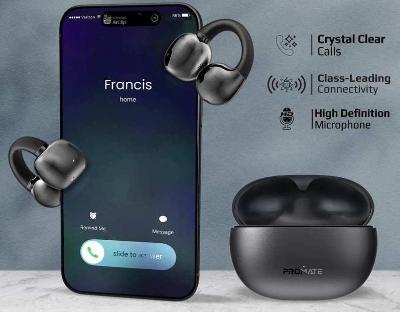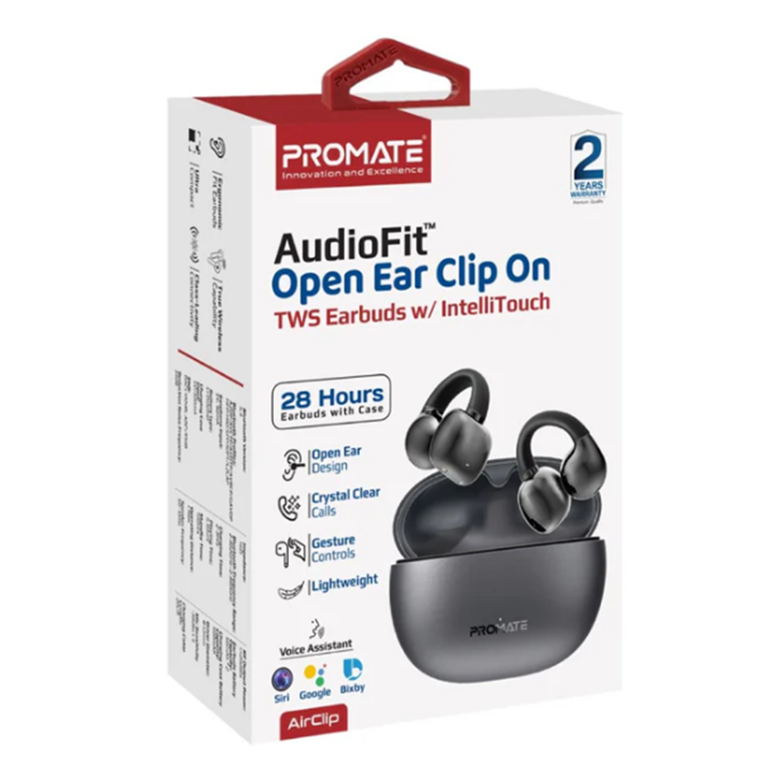 Product URL: https://www.pbtech.co.nz/product/PRM1369/Promate-AIRCLIP-BLK-Open-Ear-Clip-on-Bluetooth-Ear