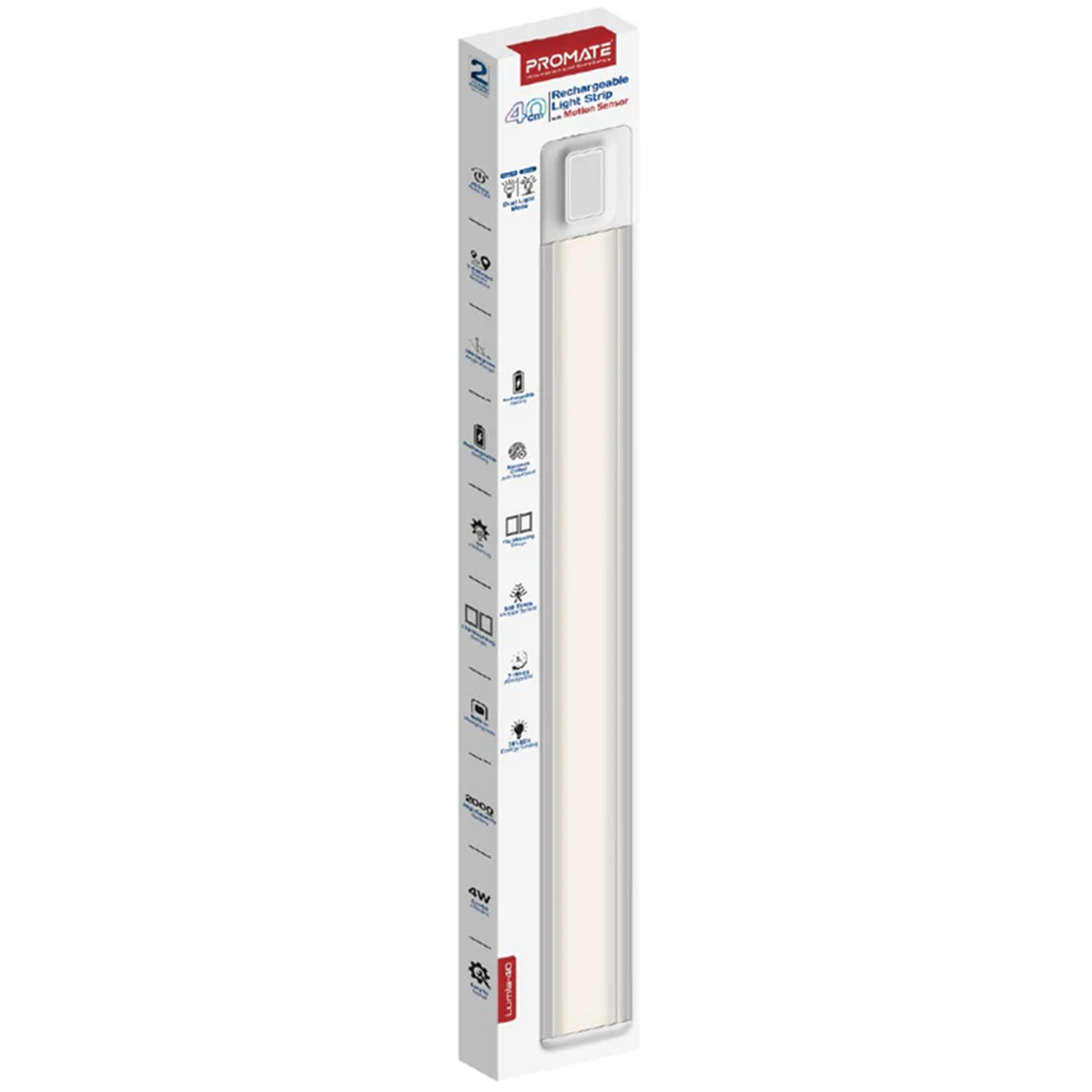 Illuminate your world with the brilliance of Lumia-40 by Promate. A 40cm motion-sensor light strip that redefines convenience and style, radiating 100lm of vibrant brightness with 4W of energy-efficient 4W power. Its long-lasting 2000mAh rechargeable battery that ensures you never miss a moment of light, while the sleek and elegant design elevates any space. Effortless to install with adhesive tape, Lumia transforms your cabinets, closets, or under-bed areas into luminous masterpieces. Perfectly blending functionality and sophistication, Lumia is more than just light-it's the glow your home deserves.