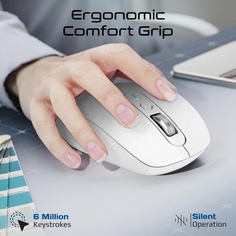 Promate SAMOTRI-WHT Tri-Connect Wireless Mouse with Rechargeable Battery. 2.4G & BT Connect