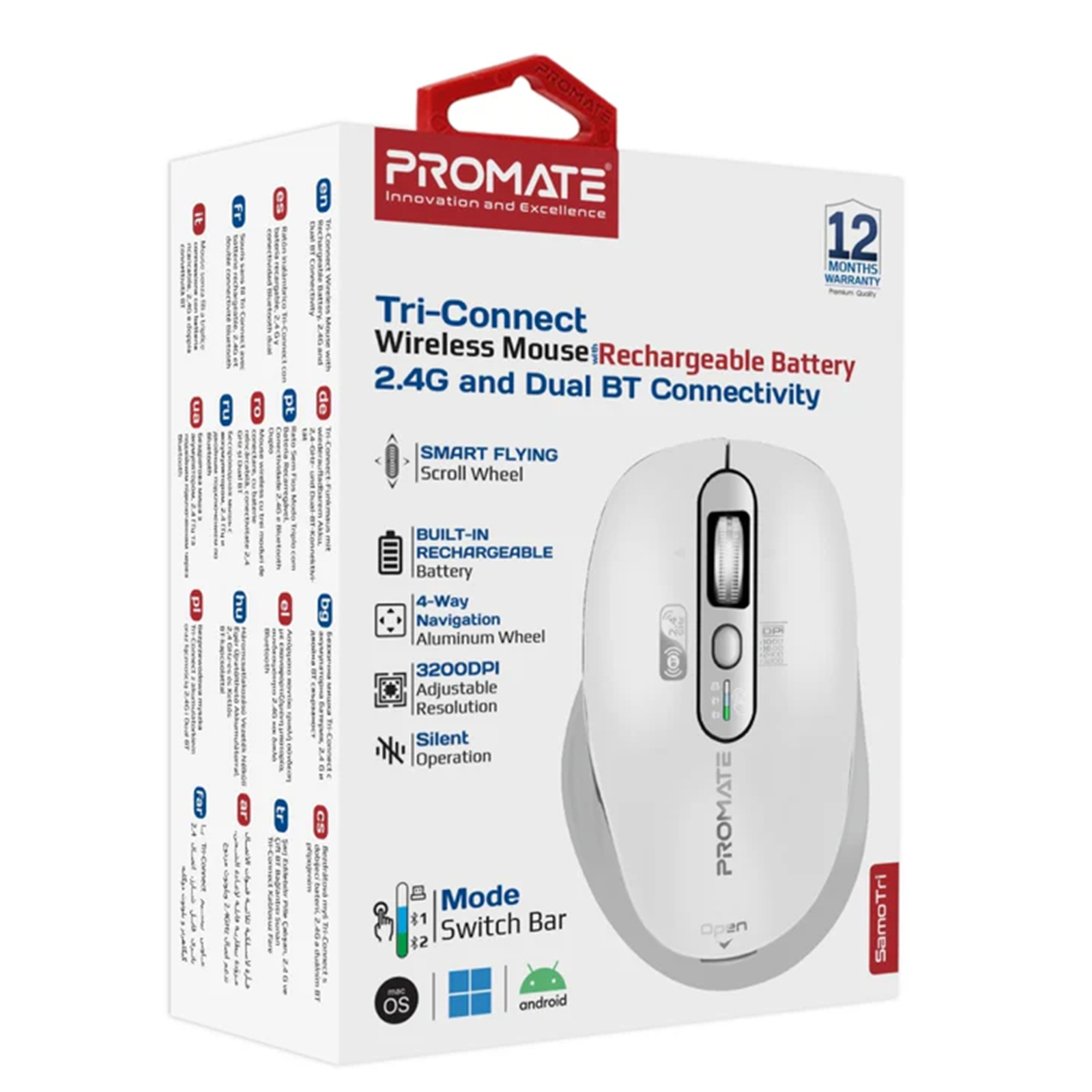 Product URL: https://www.pbtech.co.nz/product/PRM1406/Promate-SAMOTRI-WHT-Tri-Connect-Wireless-Mouse-wit