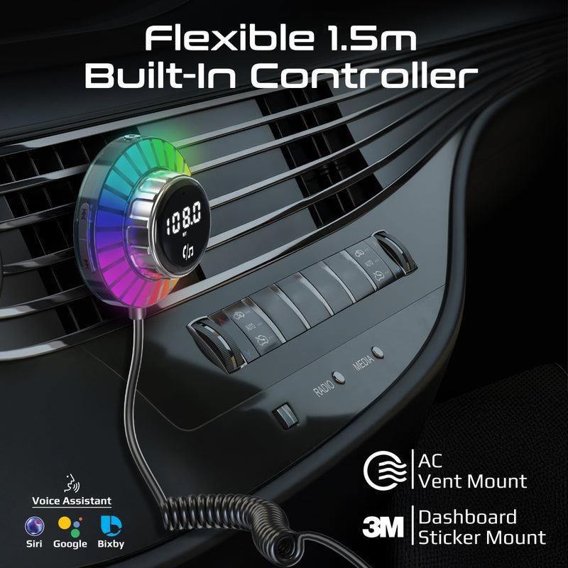 Transform your driving experience with Promate's SmarTune-EXT, the ultimate car FM transmitter that combines power, style, and convenience. Enjoy seamless music streaming and hands-free calling with Bluetooth V5.3 for stable and reliable connections. The high-powered PD30W USB-C and rapid 18W Quick Charge 3.0 ports keep your devices charged at lightning speed, while the 1.5m built-in controller effortlessly mounts to AC vents or dashboards for total control at your fingertips. Vibrant RGB lights add a dynamic flair to your car interior, while the built-in mic ensures crystal-clear conversations on the go. Designed with a comprehensive multi-protection system, SmarTune-EXT guarantees safe and worry-free use, making every drive smarter, safer, and more exciting.