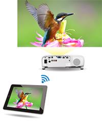 Wirelessly display content from your iOS or Android mobile devices as well as PCs, including Chromebook with the Epson iProjection App. Easily share information on the big image from up to 4 connected devices simultaneously. Just turn on the projector, use the Epson iProjection app to scan the on-screen QR code, and share content on the big screen. This application allows you to travel light and present from your mobile device.