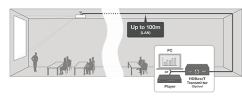 Cutting-edge HDBaseT technology means just one single CAT-5/6 cable carries Full HD video, audio, network and control commands up to 100 metres to accommodate large venues. No need for additional cables, signal repeaters or added labour.