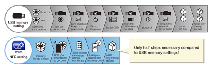 - Built-in NFC - reduces installation time of multiple projectors; read and write setting information using the Epson Projector Config Tool App