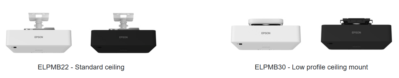 The Epson L895U is compatible with two different ceiling mount options: the ELPMB22 for height-adjustable mounting and the ELPMB30 for low-profile installations
