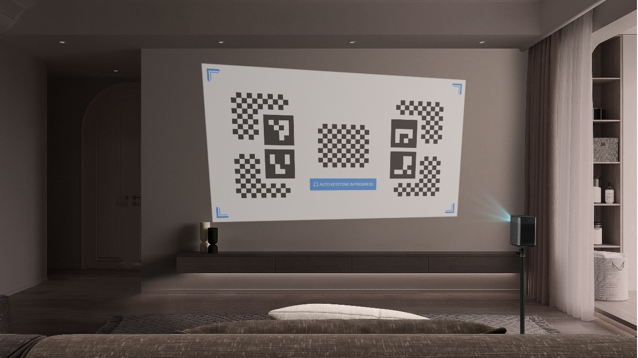 Position Halo+ directly in front of the wall/screen or at vertical/horizontal +/-40° angles and watch as it automatically adjusts its projected display to the ideal square image.3