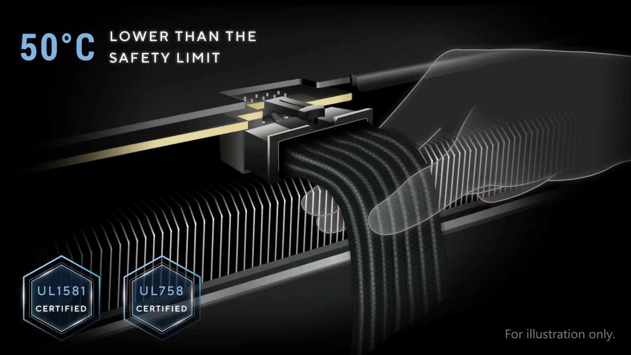 Made from a pliable premium material, these etched cables are easily flexible during installation, and they operate at temperatures 50°C lower than the safety limit when routed for cable management. These cables also meet the rigorous standards of the UL1581 flame test and UL758 certification, helping to ensure a smooth PC DIY experience and exceptional safety.