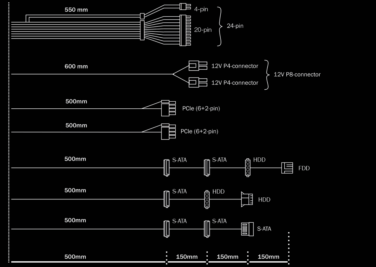 Pure Power 500W is equipped with high-quality sleeved cables that simplify component installation, increase airflow and improve cooling. The All-in-one cable has a convenient easy-plug HDD connector.
