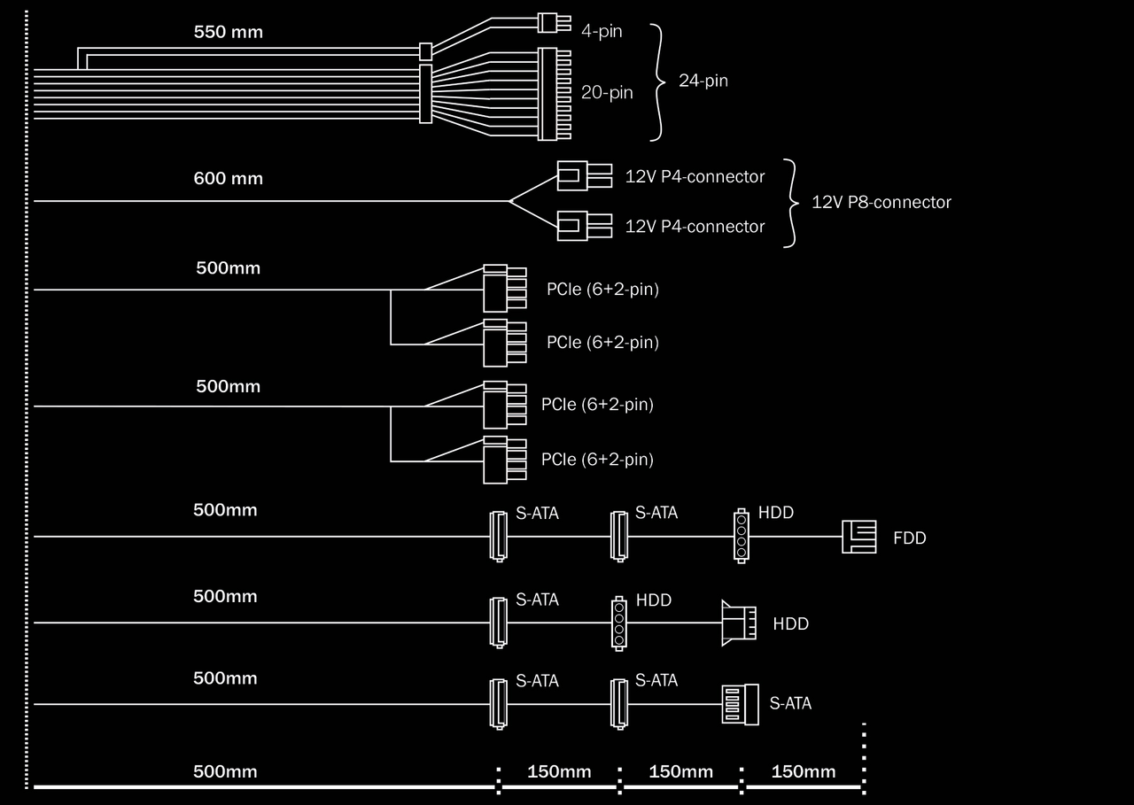 Pure Power 600W is equipped with high-quality sleeved cables that simplify component installation, increase airflow and improve cooling. The All-in-one cable has a convenient easy-plug HDD connector.