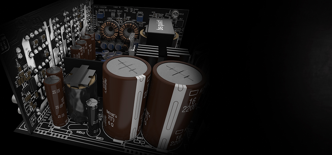 Only the best components are used in Dark Power 12 1000W. That is why we have exclusively built high-quality Japanese capacitors into the PSU chassis. They are rated to 105°C which ensures stability, reliability and a long operating life.