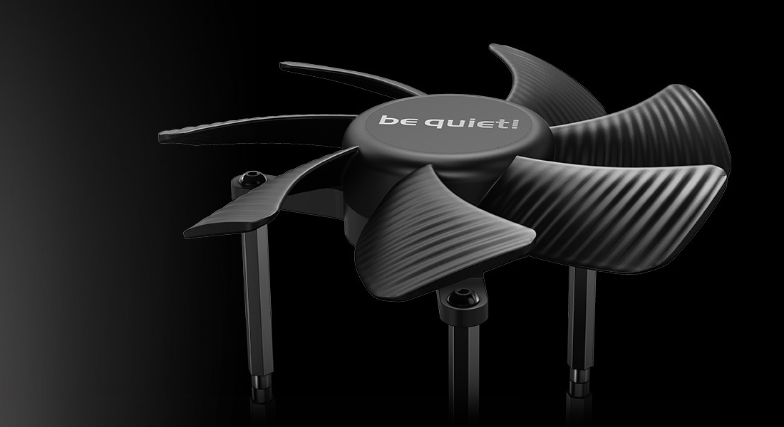 The be quiet! Silent Wings fan mounted on a tripod enables maximum airflow and a virtually inaudible operation. This is thanks to its unique, airflow-optimized fan blade design along with an advanced fluid-dynamic bearing and 6-pole fan motor for less vibration, super-long life and minimal power consumption.
