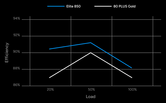 ATX 3.1 delivers tighter voltage and current regulation with peak power support up to 200% of its rated output, making the Elite Gold 850 ready for the latest and upcoming mid-range GPUs.