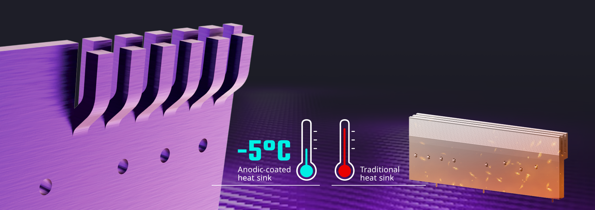 An anodic-coated heat sink keeps average temperatures 5? lower than a traditional heat sink for enhanced durability and a prolonged life span.