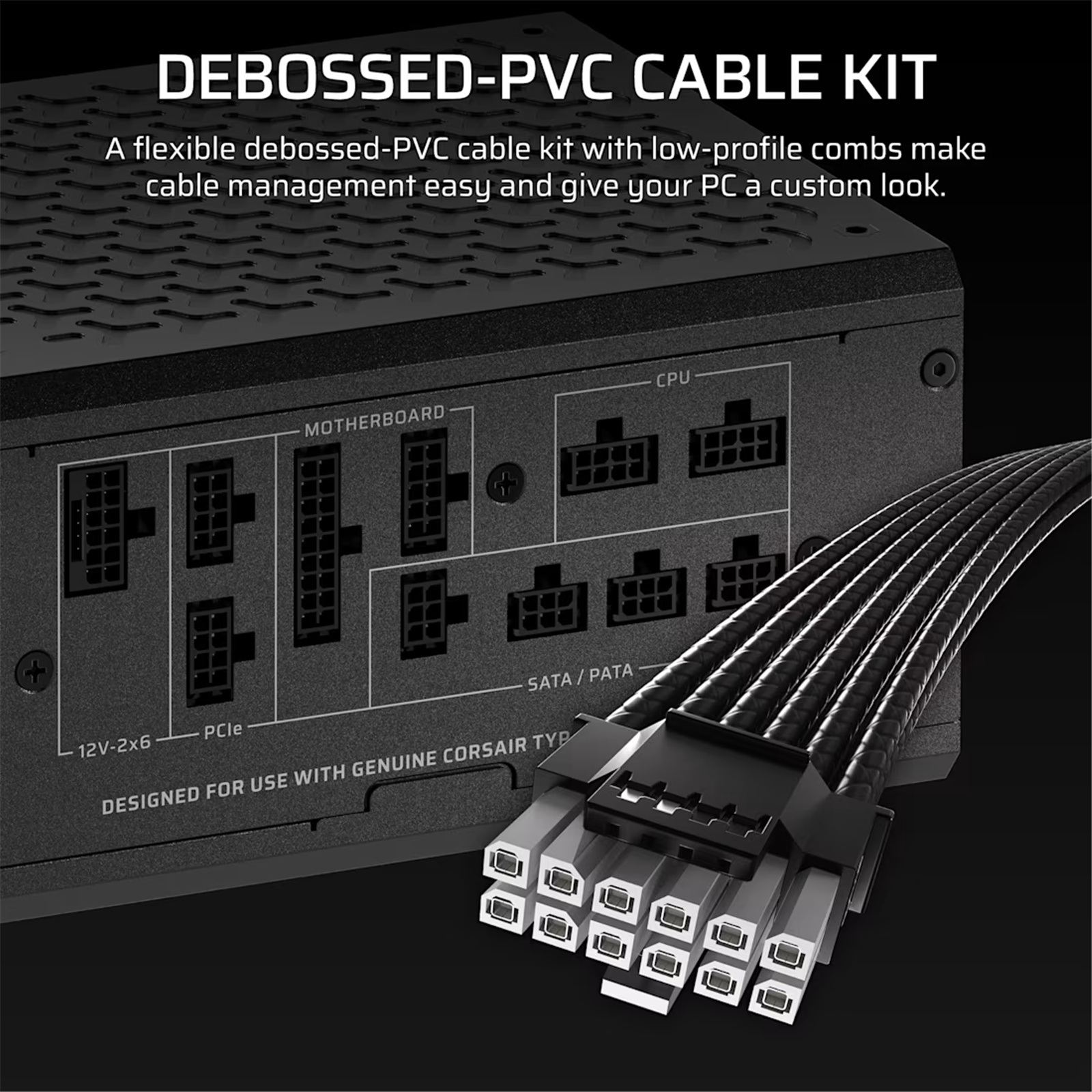 The fully-modular connections have all been shifted to the side of the PSU, allowing for easy access and simplifying hardware upgrades and cable management. Includes a debossed PVC cable kit with smaller Type-5 connectors for easy cable routing and a premium look.