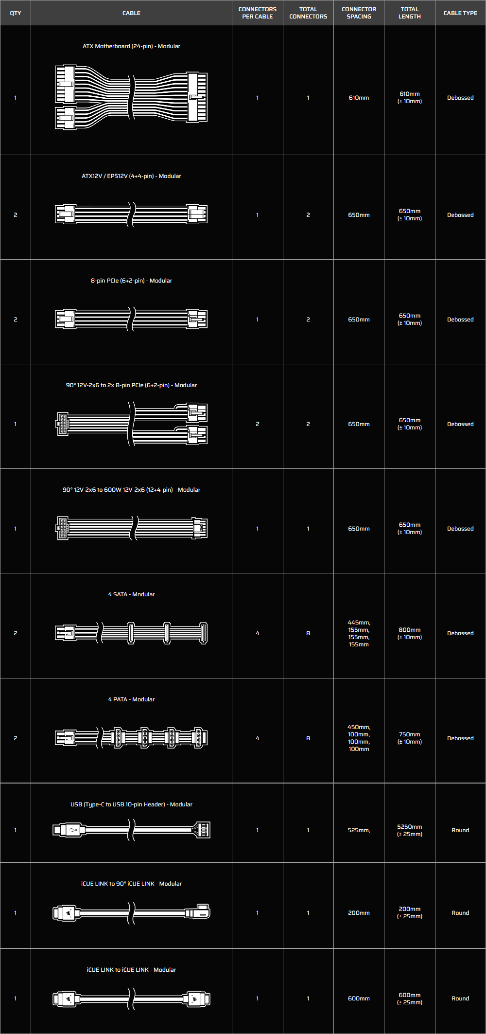 - PCIE 5.0 - Full Modular - Native 12V-2x6 cable - iCUE Link - 10 Years Warranty