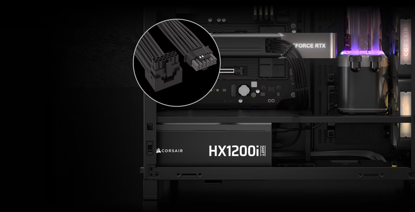 CORSAIR HXi SHIFT power supplies feature all the connections needed to power today's most demanding PC upgrades now and into the future, including the latest generation of power-hungry graphics cards and CPUs.