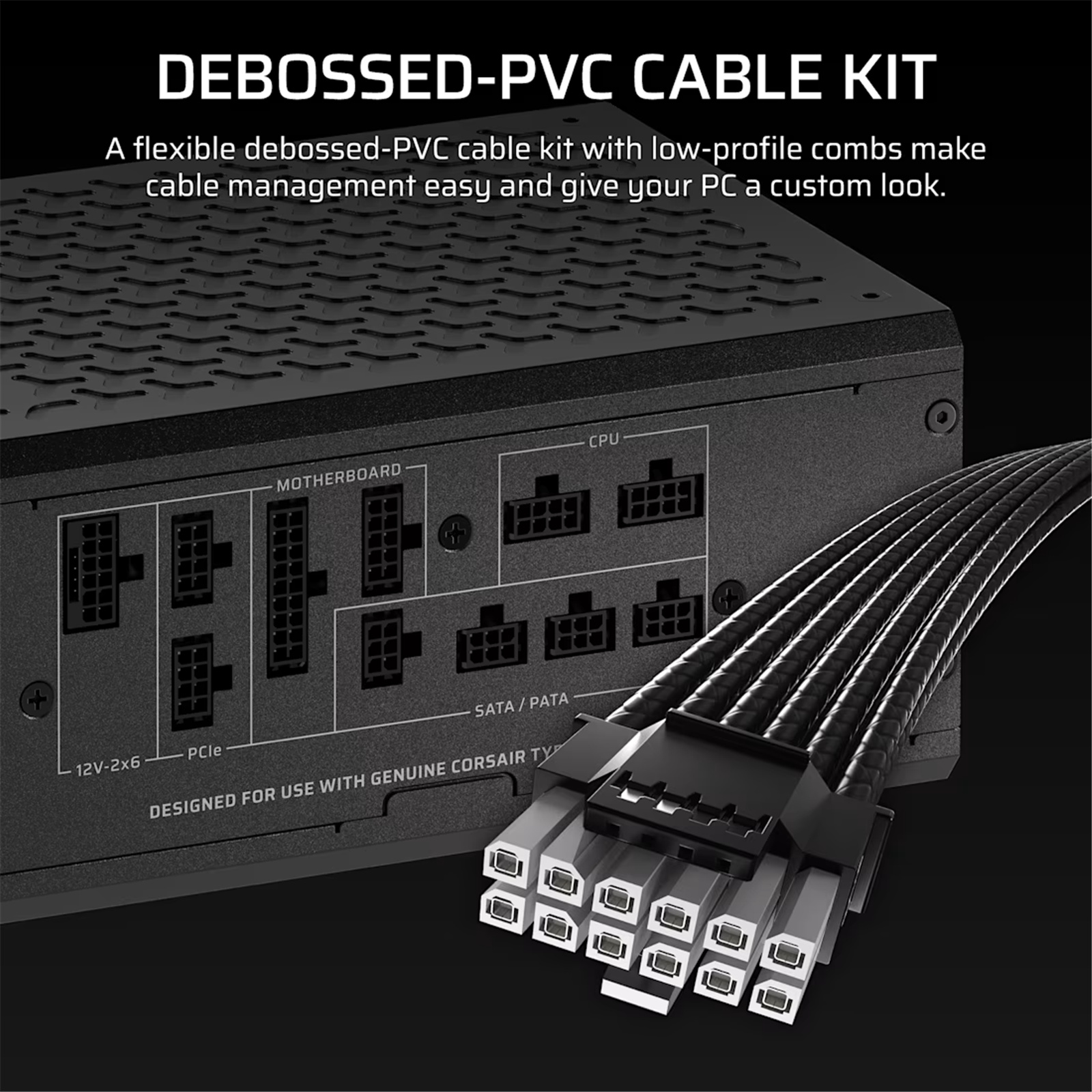 The fully-modular connections have all been shifted to the side of the PSU, allowing for easy access and simplifying hardware upgrades and cable management. Includes a debossed PVC cable kit with smaller Type-5 connectors for easy cable routing and a premium look.