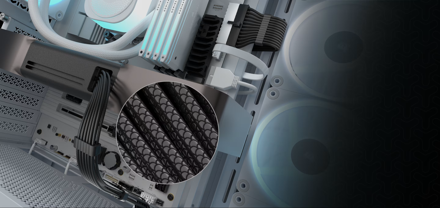 CORSAIR Type-5 PSU cables take up less space, which combines with the modular design to allow for easier cable management.