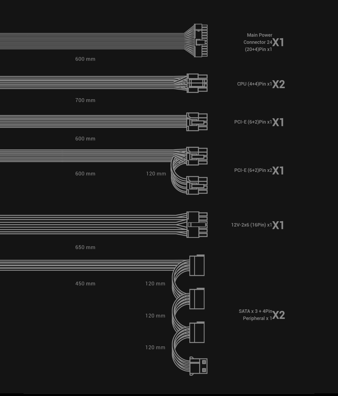 80 Plus Gold - Full Modular with PCIe 5.1 12V-2X6 Cable - 10 Years Warranty