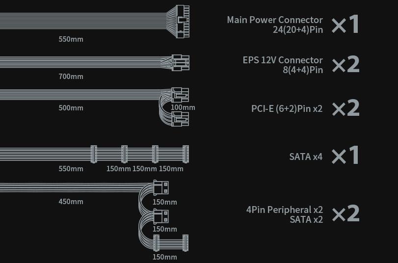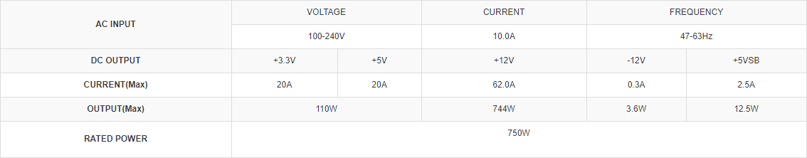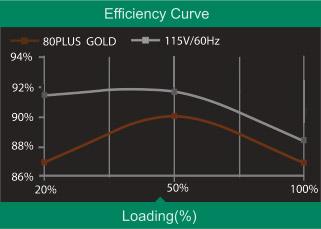 80 PLUS® Gold certified - Up to 87~90% efficient (20~100% Loading)