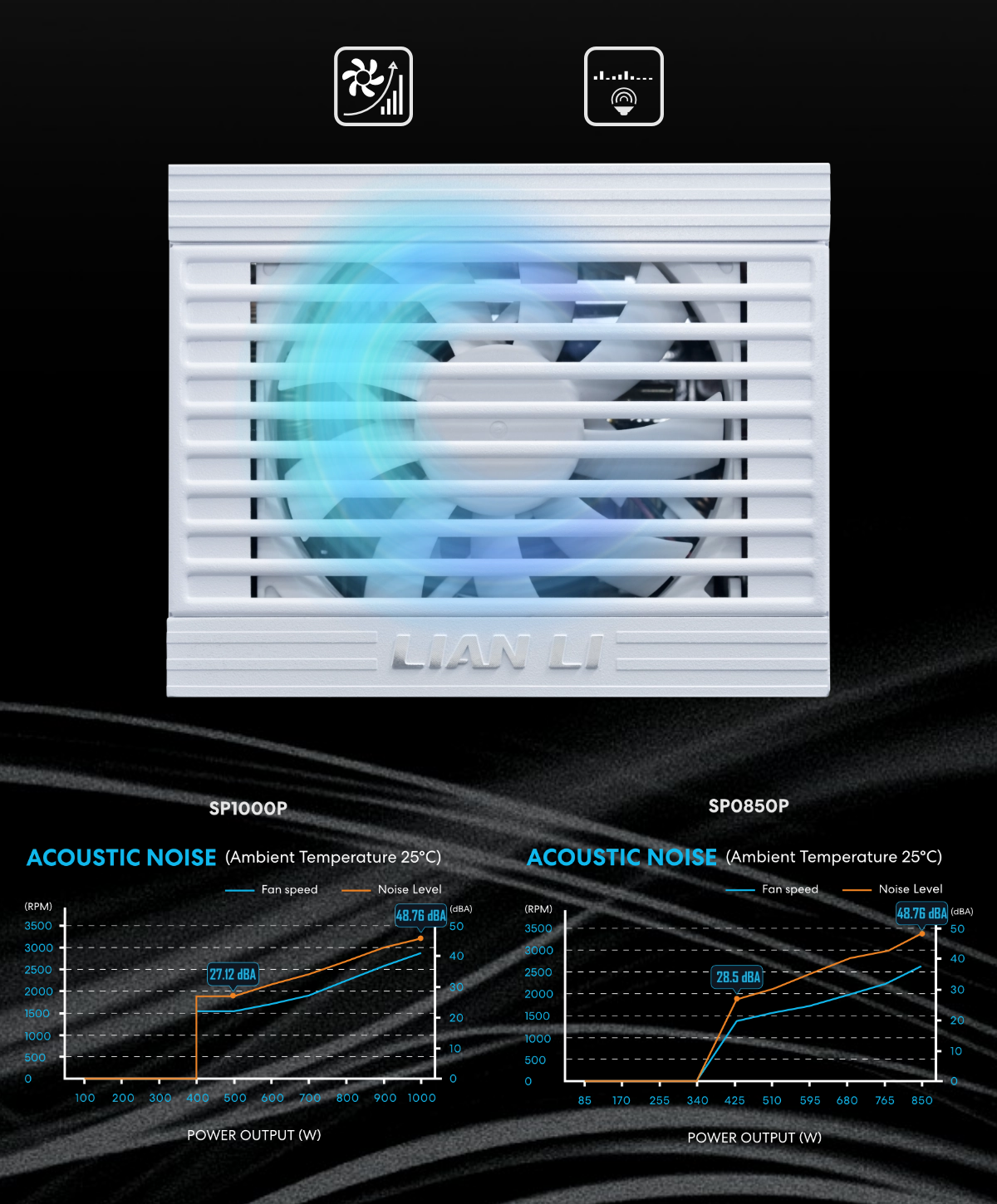 Enjoy true silence with a zero-RPM mode under 40% load. When performance demands increase, the fan ramps up seamlessly to keep temperatures in check and ensure long-term reliability.