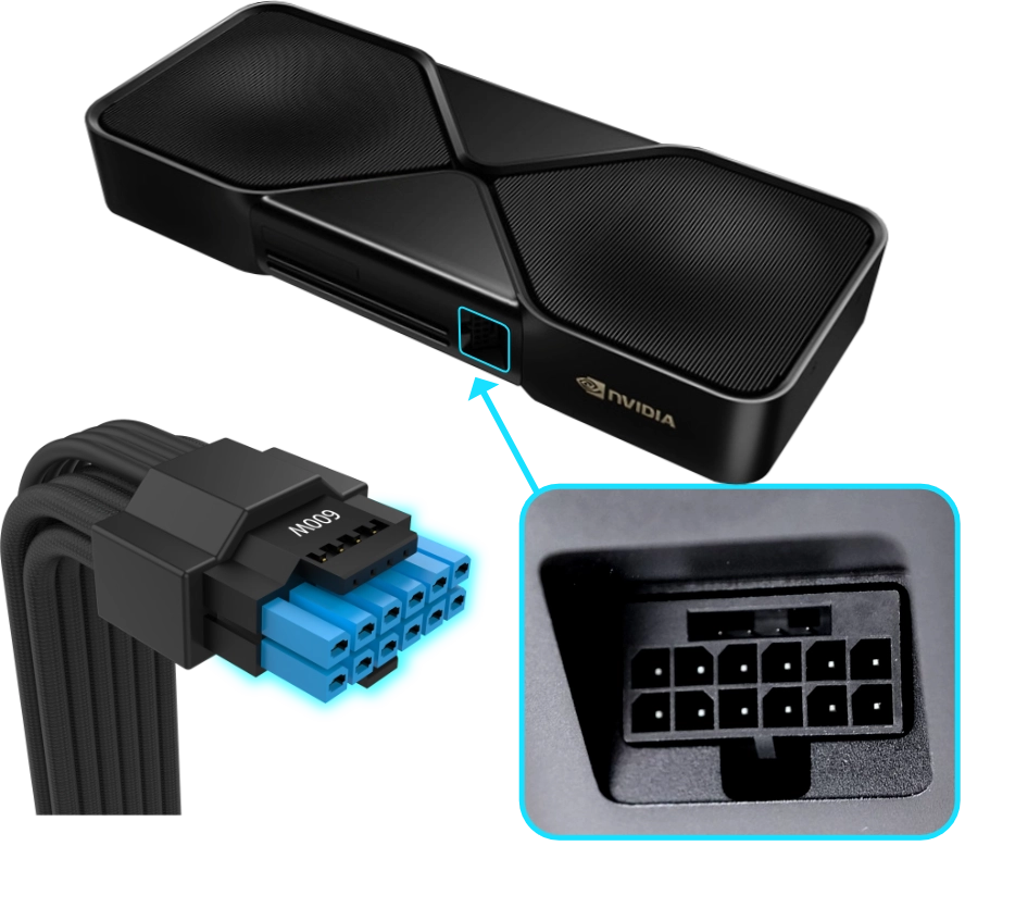 Note: The blue-marked 12V-2x6 connector must be fully inserted to ensure proper connection and safe operation.