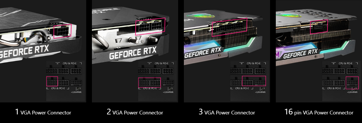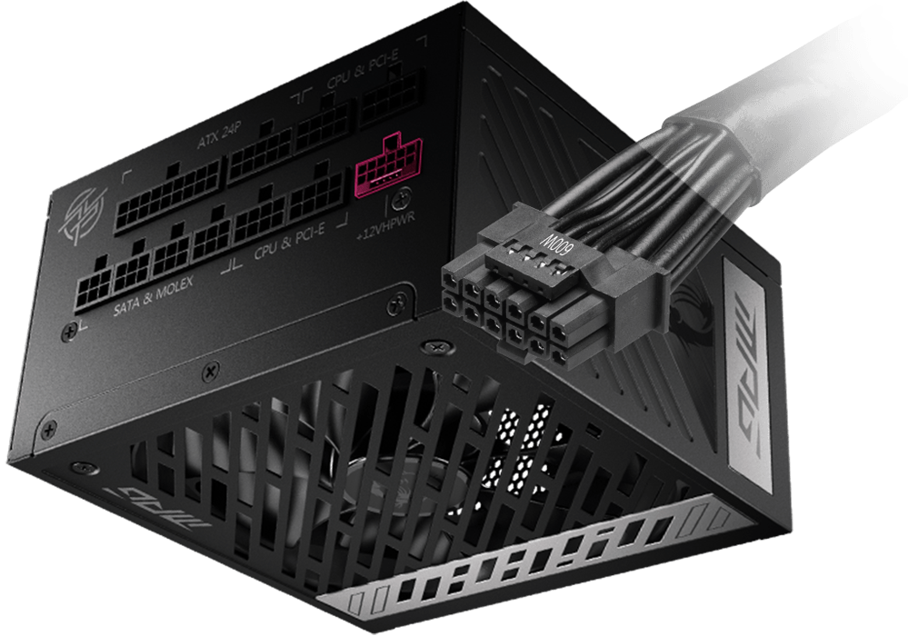 The gaming power supply can support the NVIDIA and AMD graphics cards. Prepared for the highest of requirements, the MPG power supply's IO supports can support different and versatile ways of connection according to the power connector design of different graphics cards.
