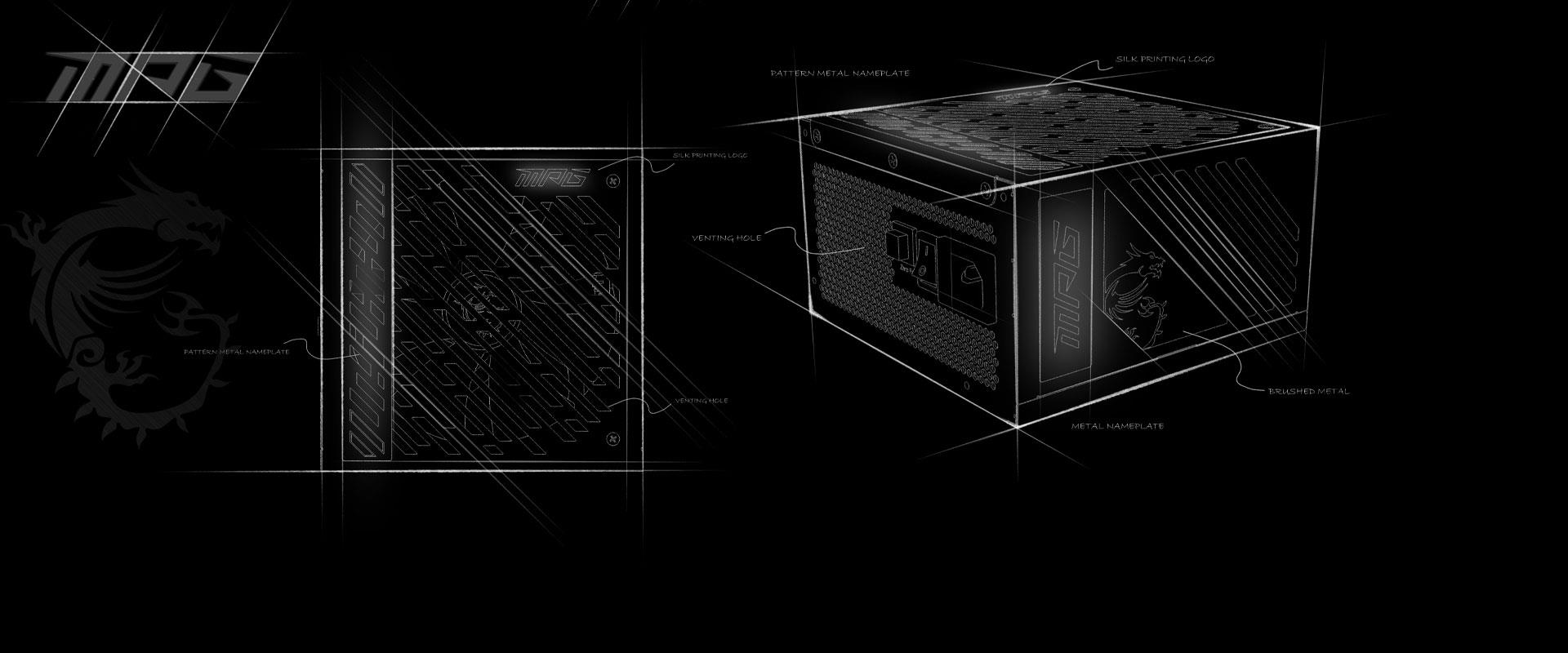 The MPG power supply showcases unique styles and color schemes with laser-like lines to create a masterful art piece with individuality, fully expressing the charm of MPG.