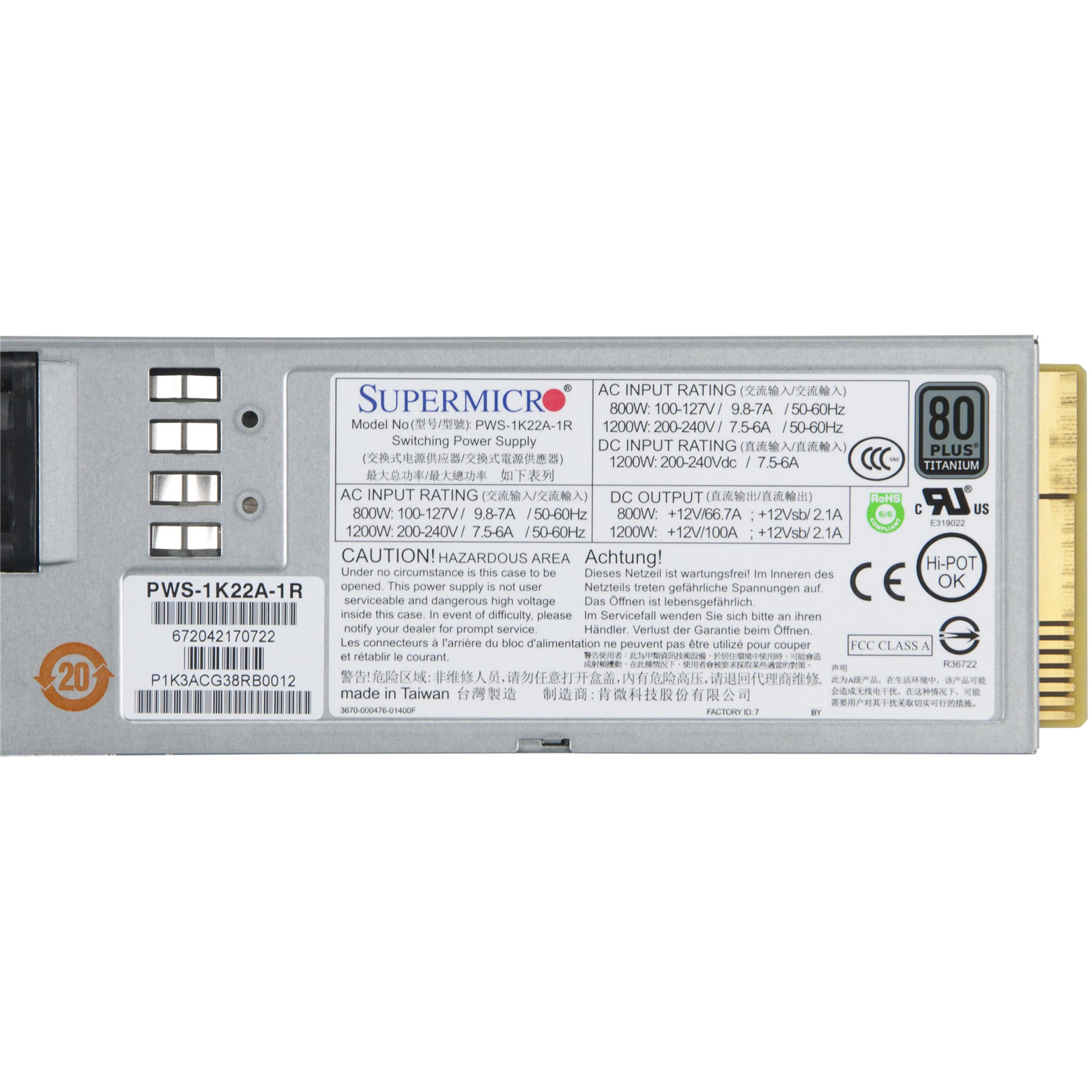 Supermicro PWS-1K22A-1R 1200W 1U Redundant Power Supply 80 Plus Titanium