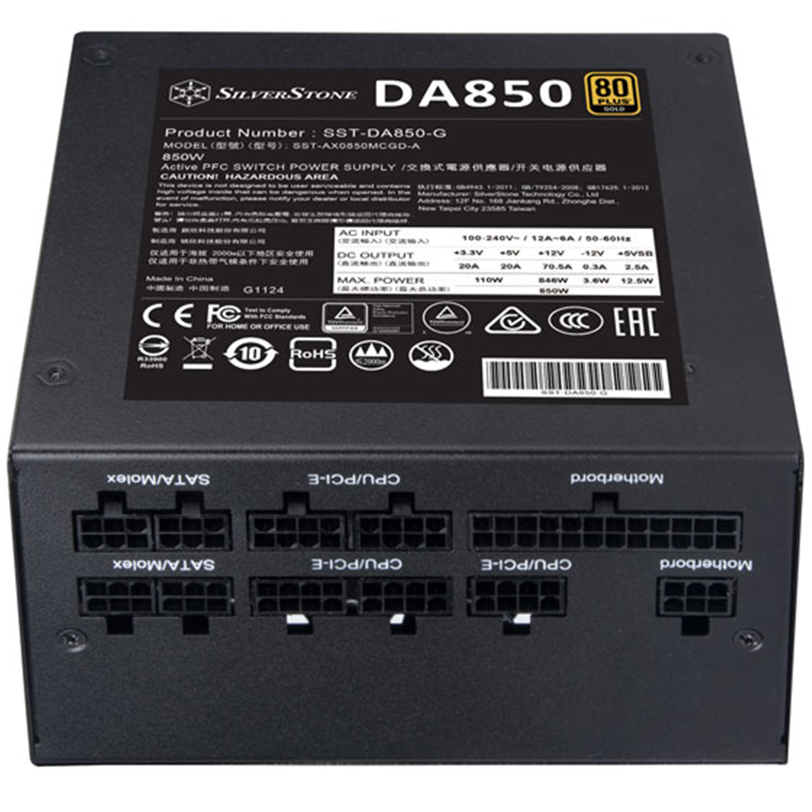 Silverstone DA850 850W ATX Power Supply 80Plus Gold - Silent running - 120mm fan with 18 dBA - Fully Modular
