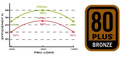 Designed for 80 PLUS Bronze level of efficiency to reduce wasted heat and save on electricity.