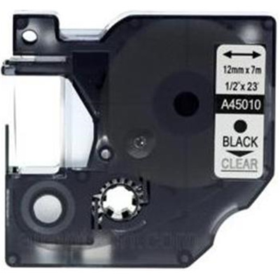 A45010 Compatible Dymo Label Tape 12mm x 7m Black on Clear